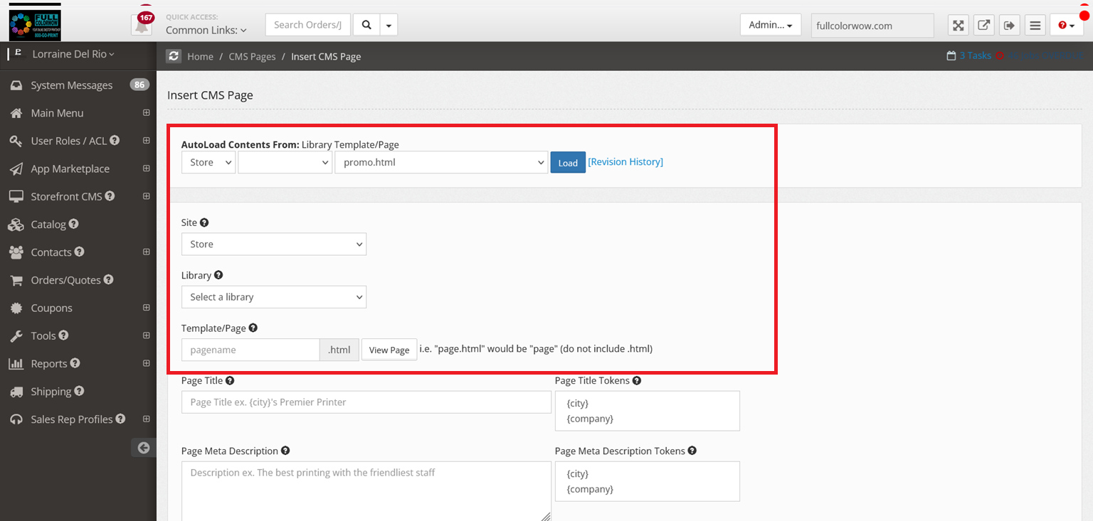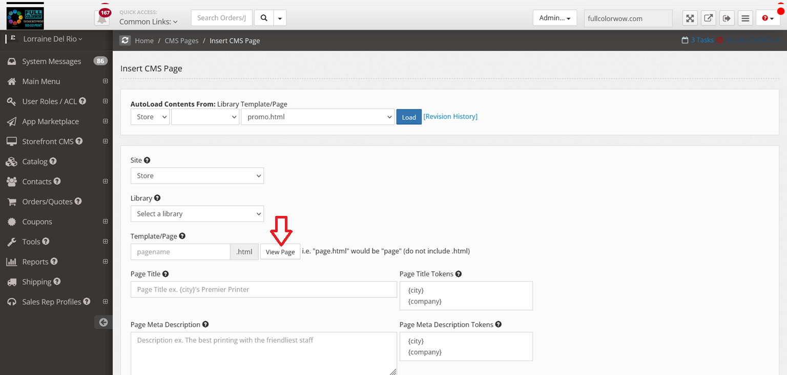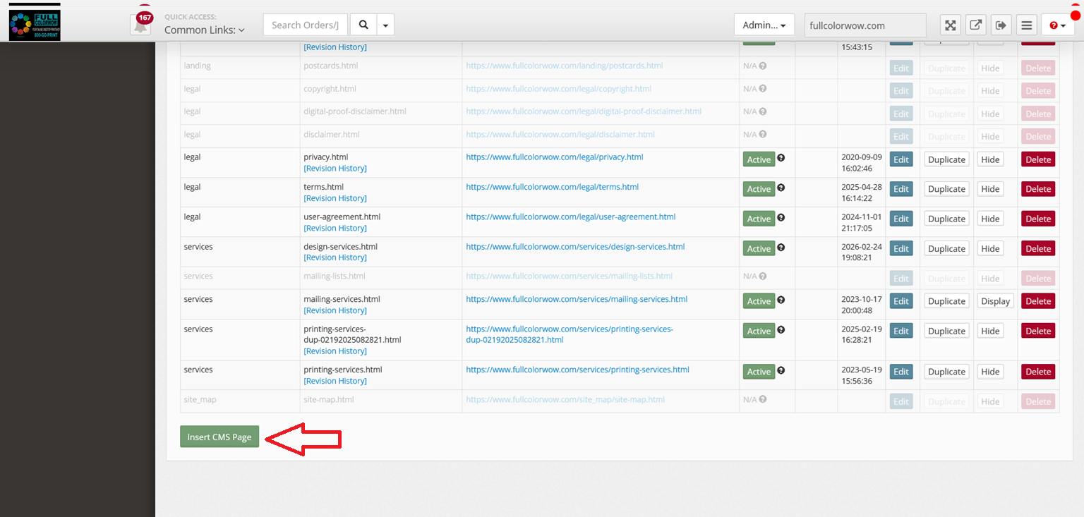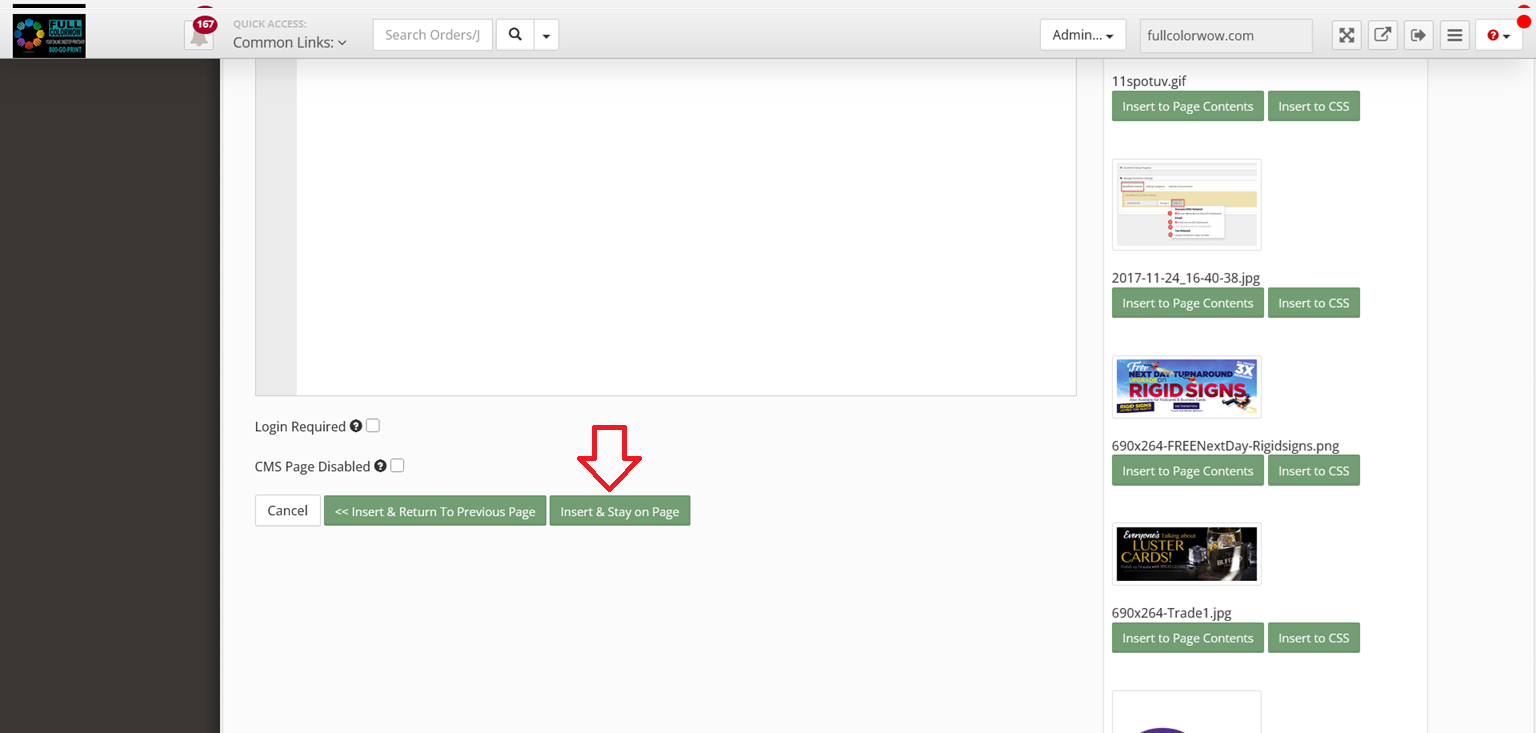 4. Scroll to the bottom of the page and click "Insert CMS Page"