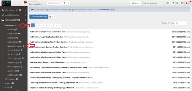 2. Then select "CMS Features" and then select "Navigation Menus"