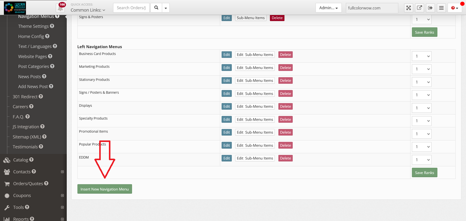 3. Scroll to the bottom of the page and click "Insert New Navigation Menu"