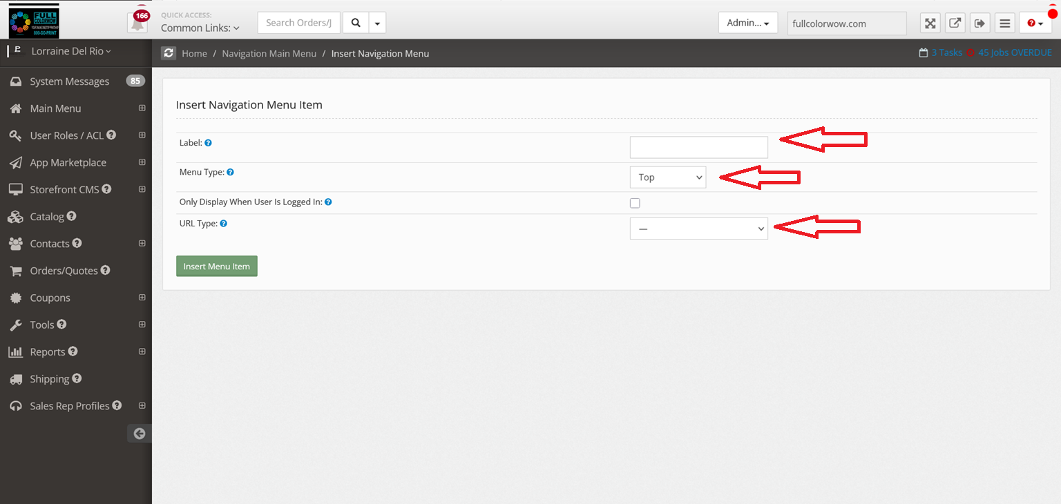 - Menu Type - If you want this menu to display in the top navigation menu or side navigation menu
