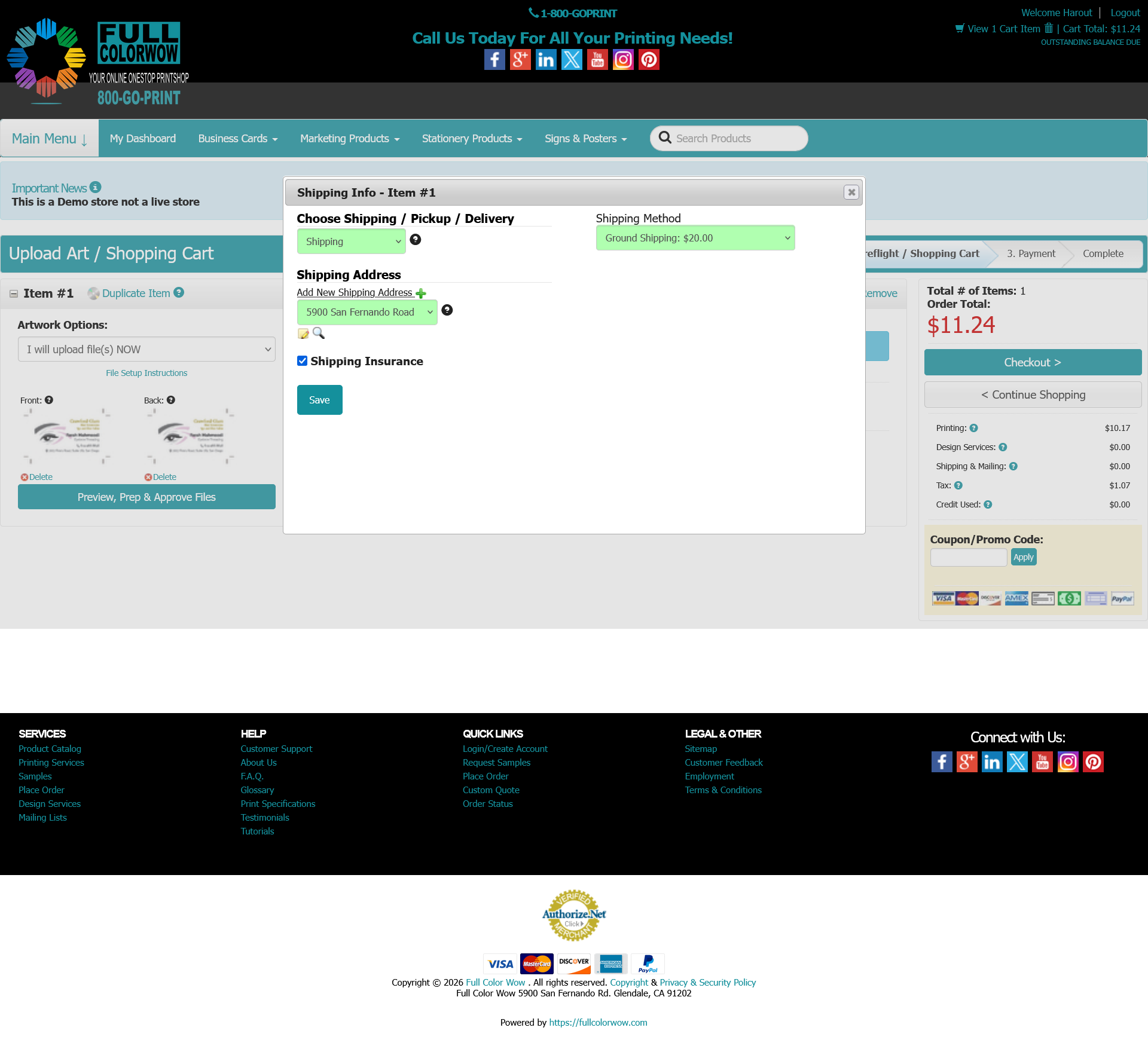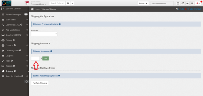 Enter the percentage markup for Shipping Insurance. *Note - If the customer elects to insure their order the shipping total will increase by whatever percentage amount you set below. *