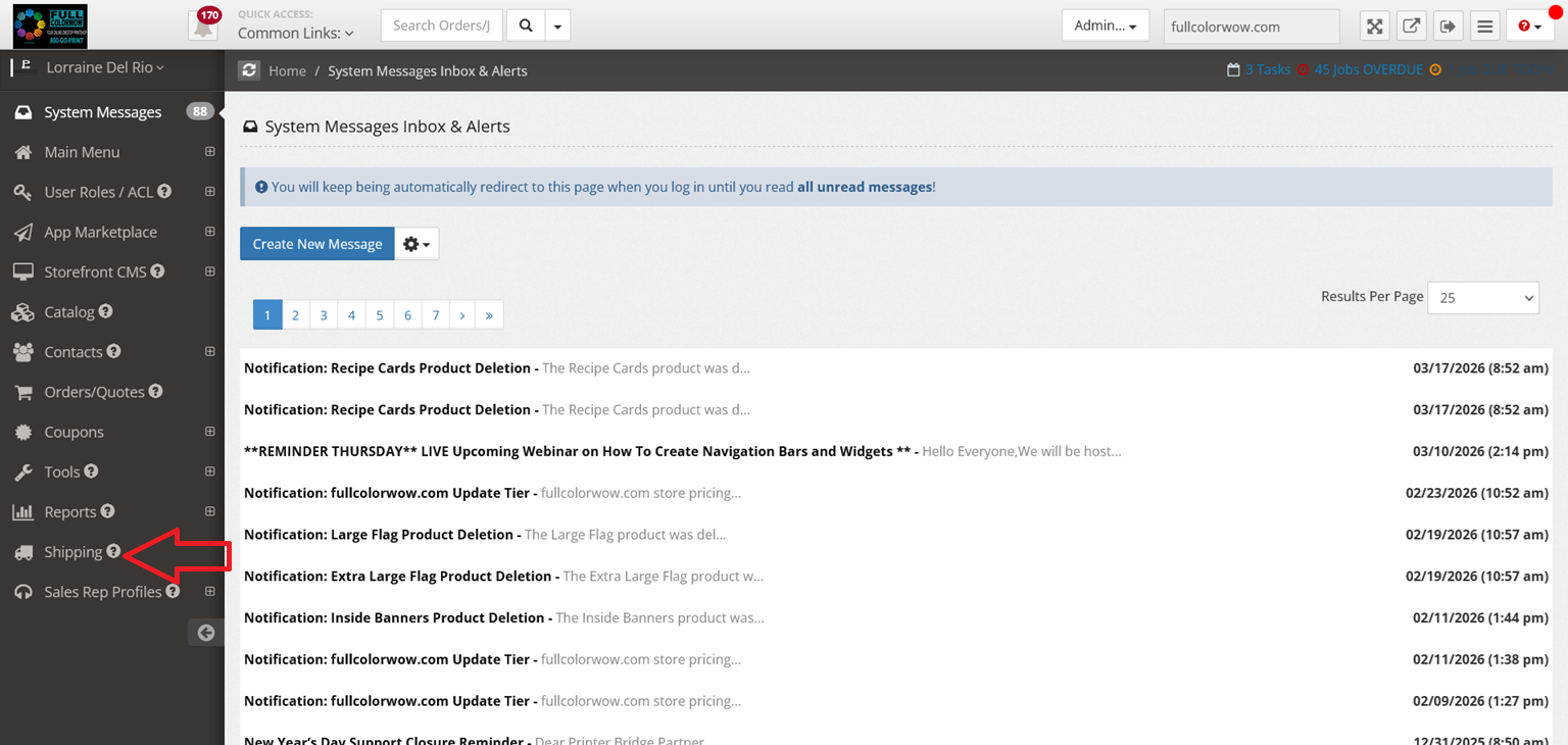 Click "Shipping" on the left hand navigation