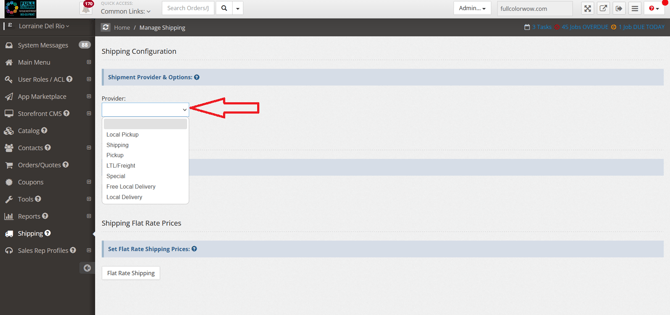 Click "Shipment Provider & Options" >Select your provider option from the dropdown menu. Here you can set the following options.