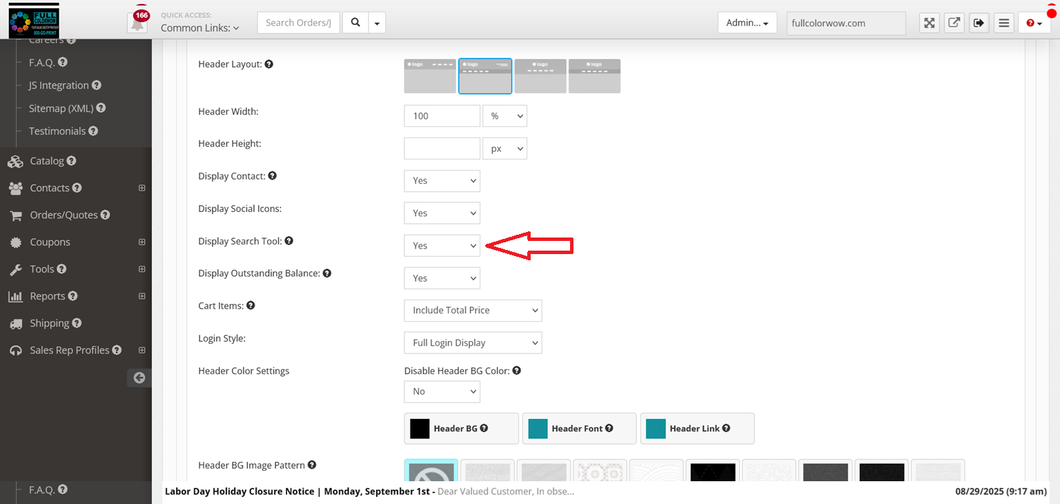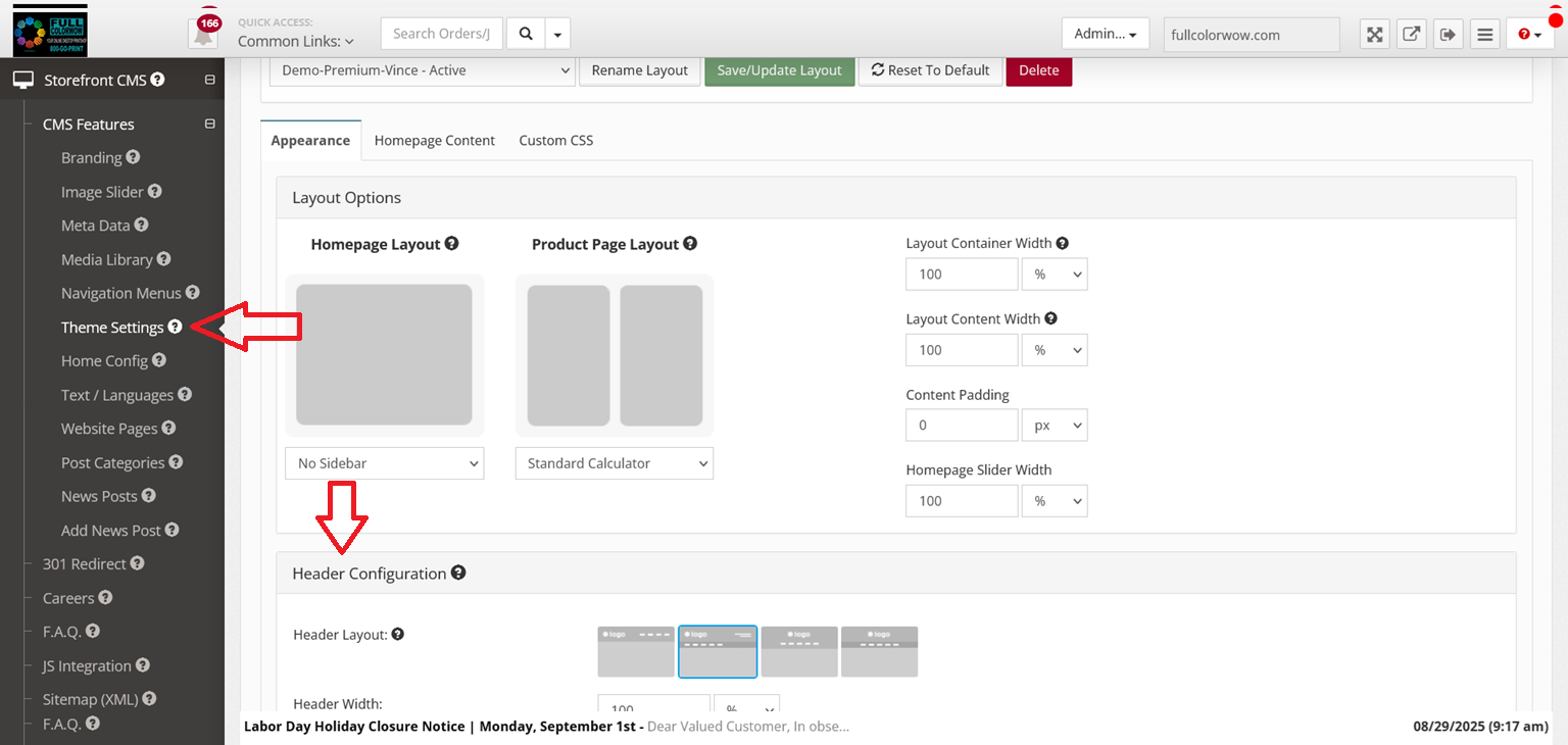 Theme Settings > Header Configuration