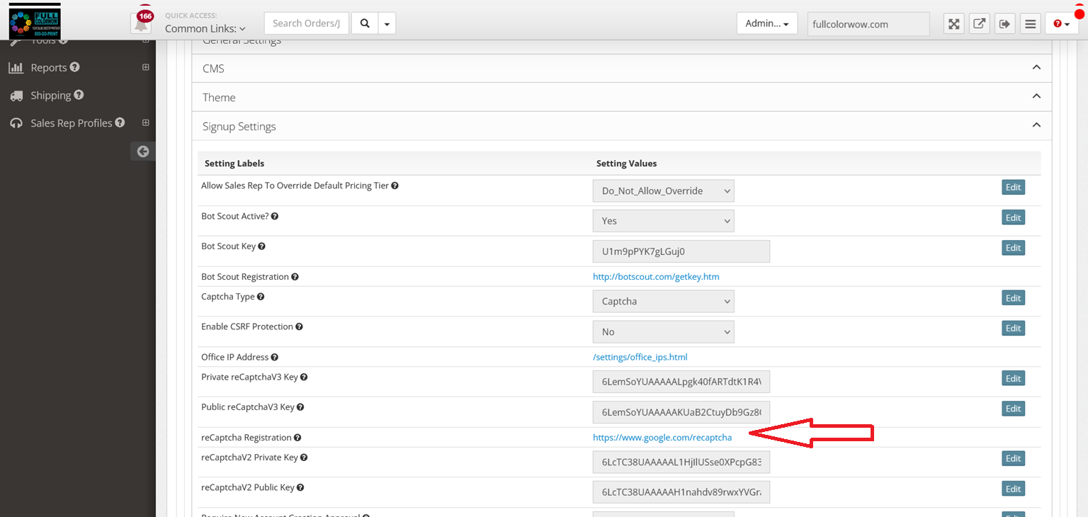 - Locate "reCaptcha Registration" and click the "https://www.google.com/recaptcha" link