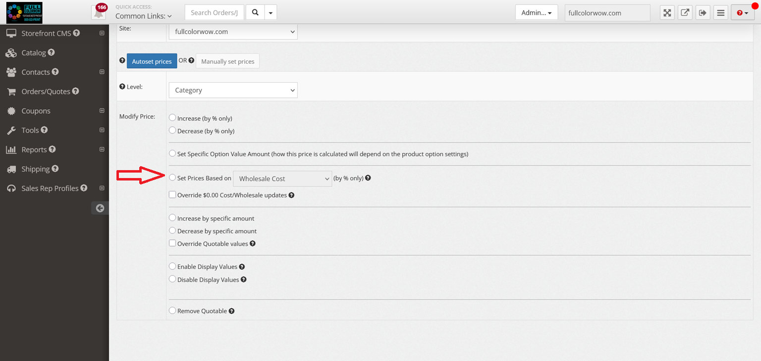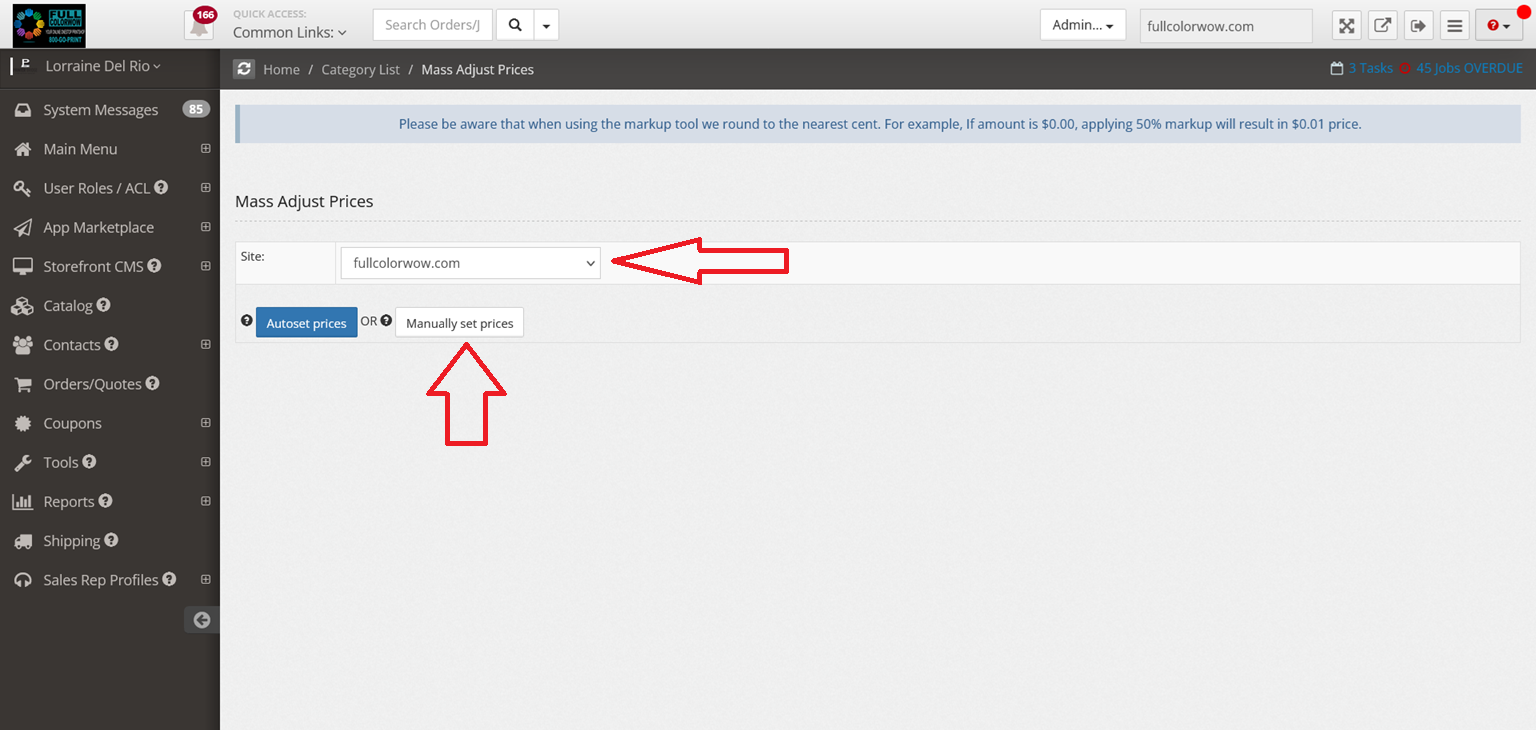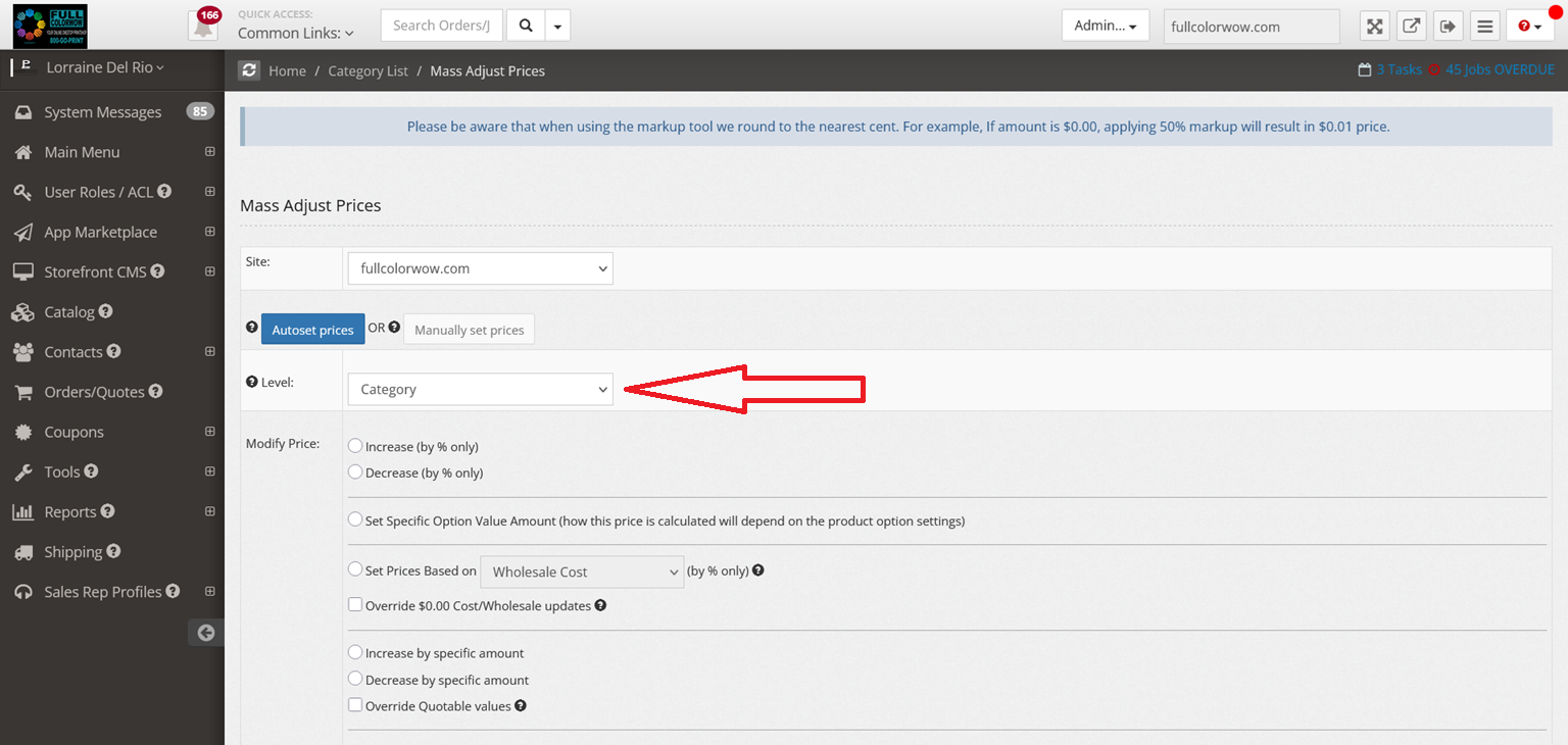 - Categories: Select all for global markup (for all categories)/You may markup a single category. Be sure to select that category only