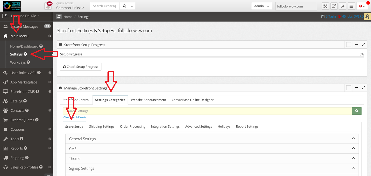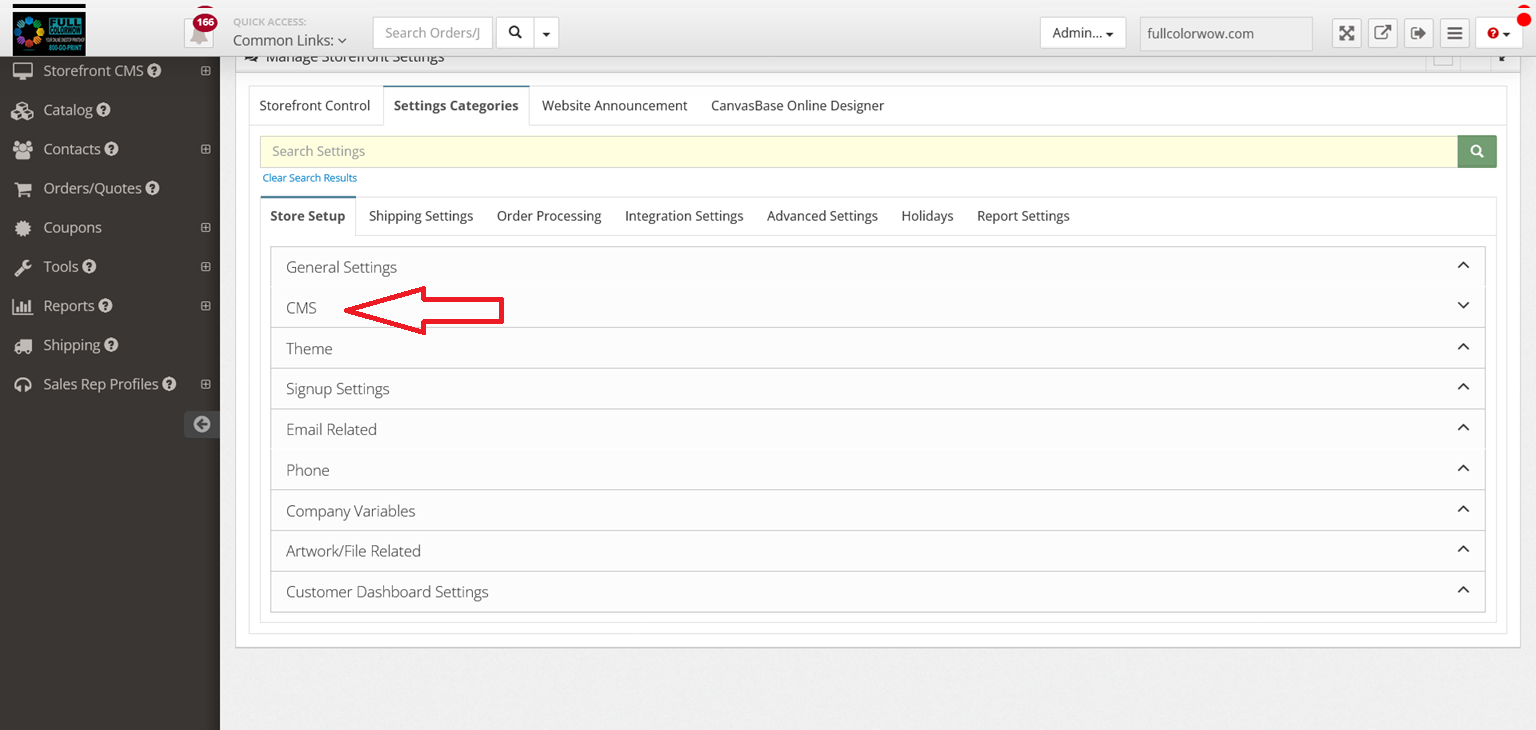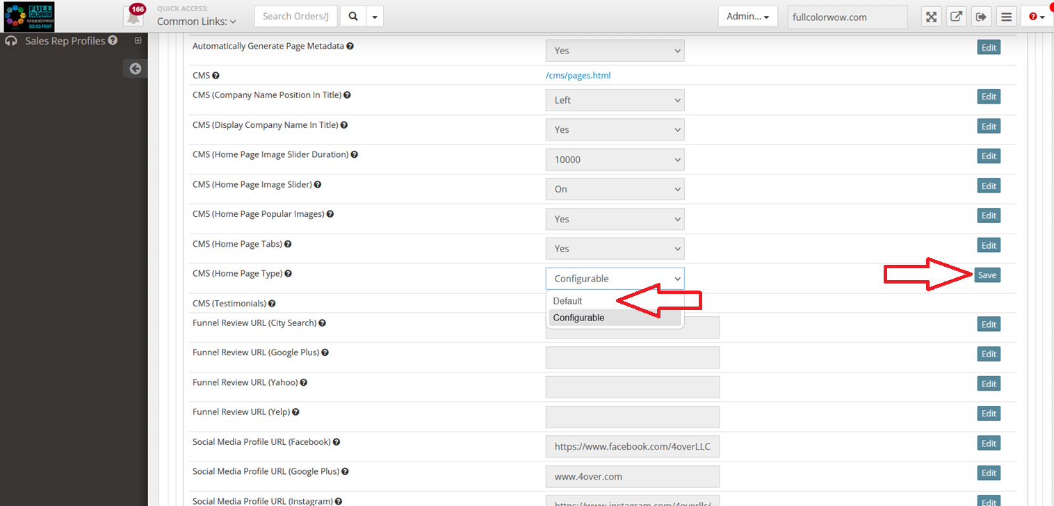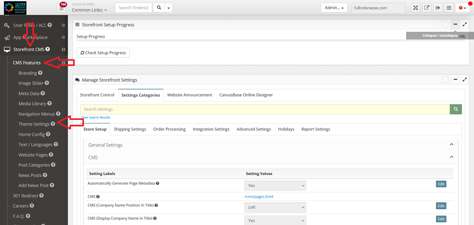 Step 1 ( Set CMS Home Page Type to Default) - Main Menu > Settings > Settings Categories > Store Set Up > CMS > Update CMS (Home Page Type) to "Default"