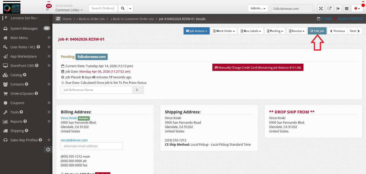 - Click Edit Job