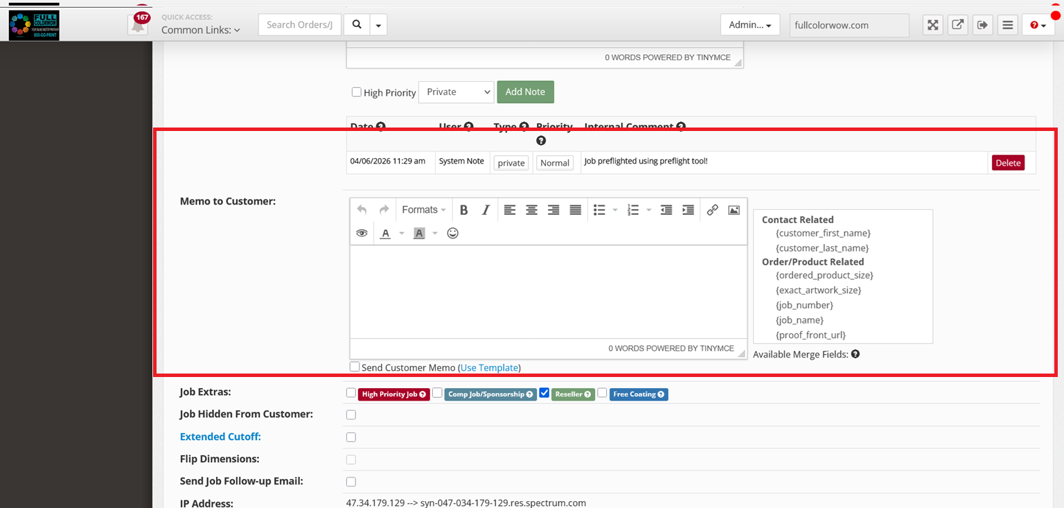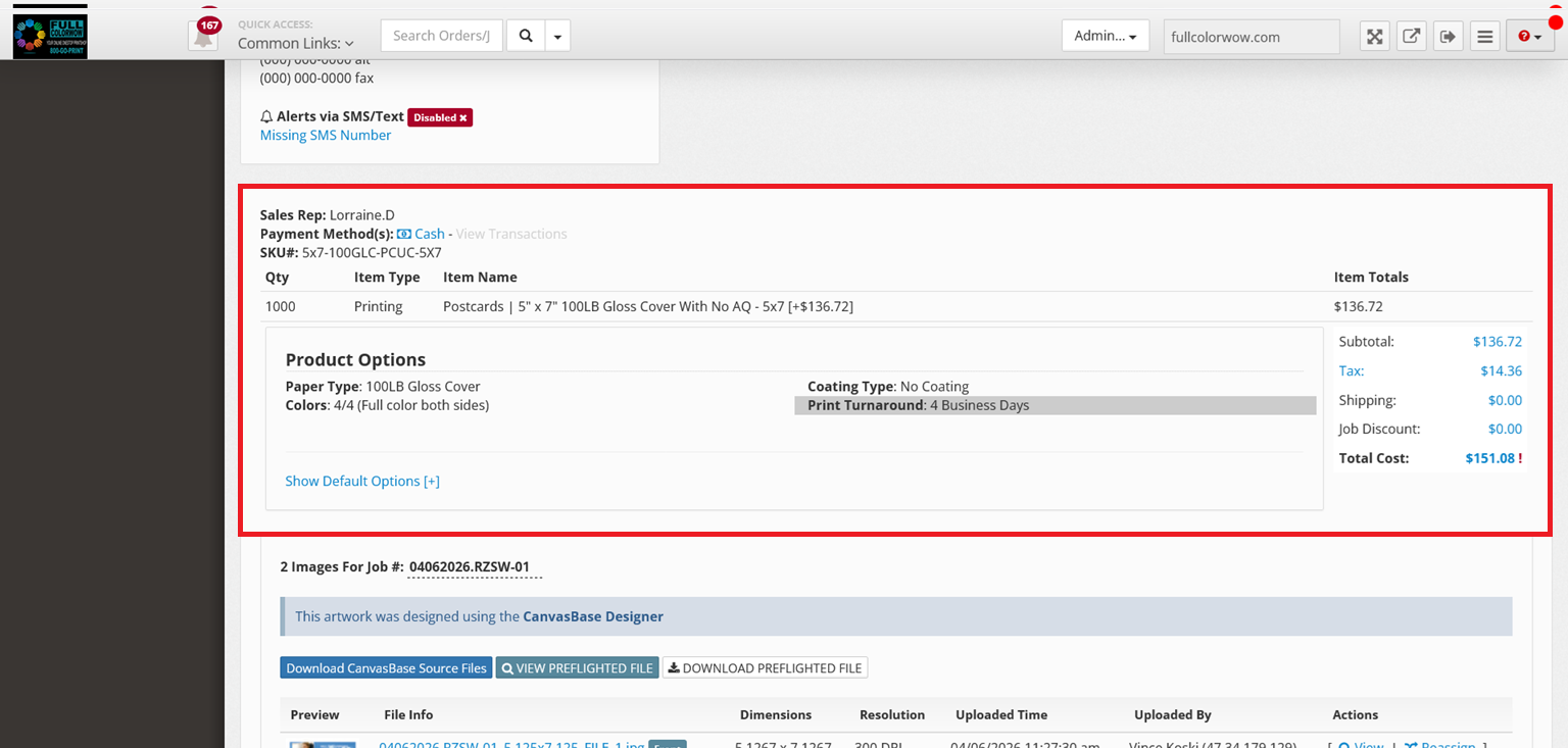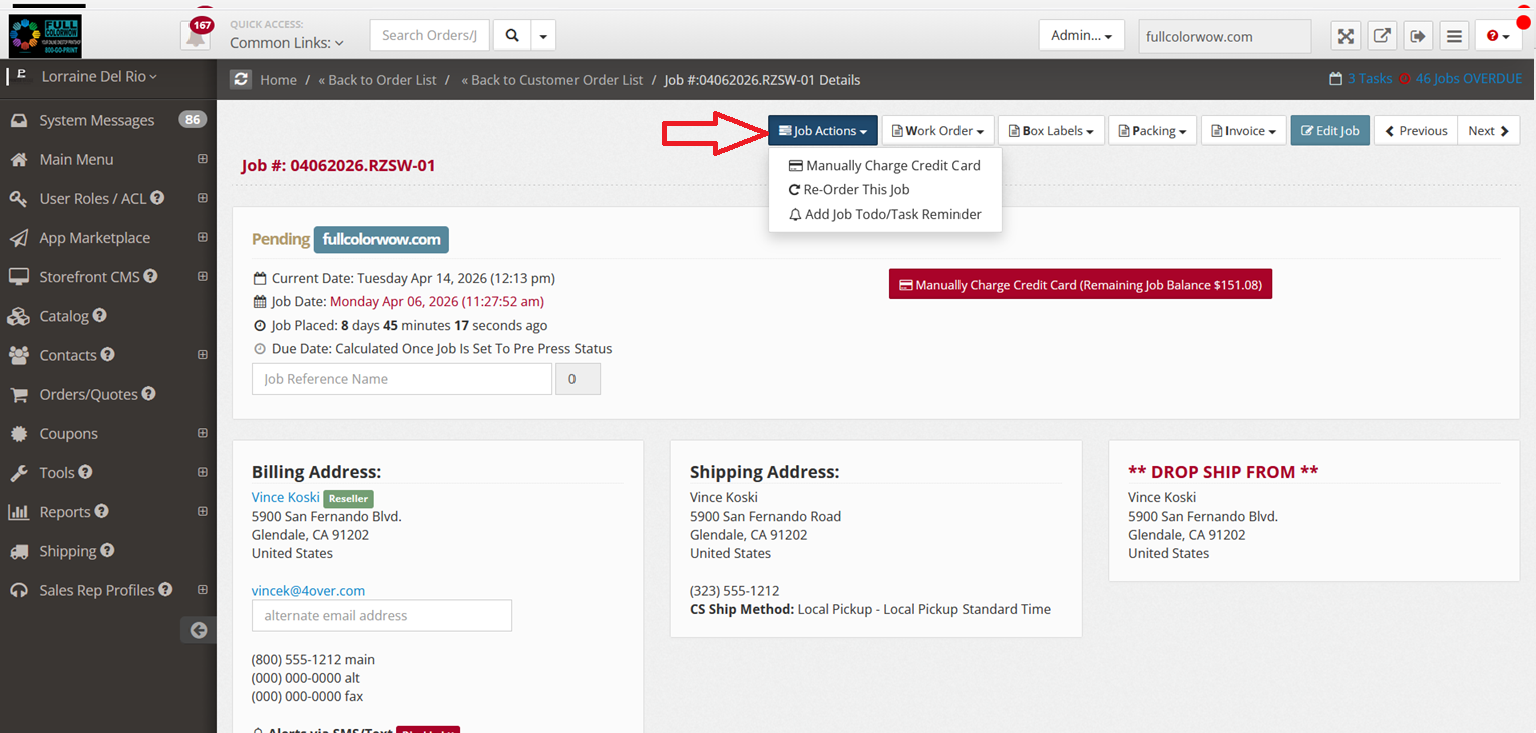 Managing an Order in Job Details