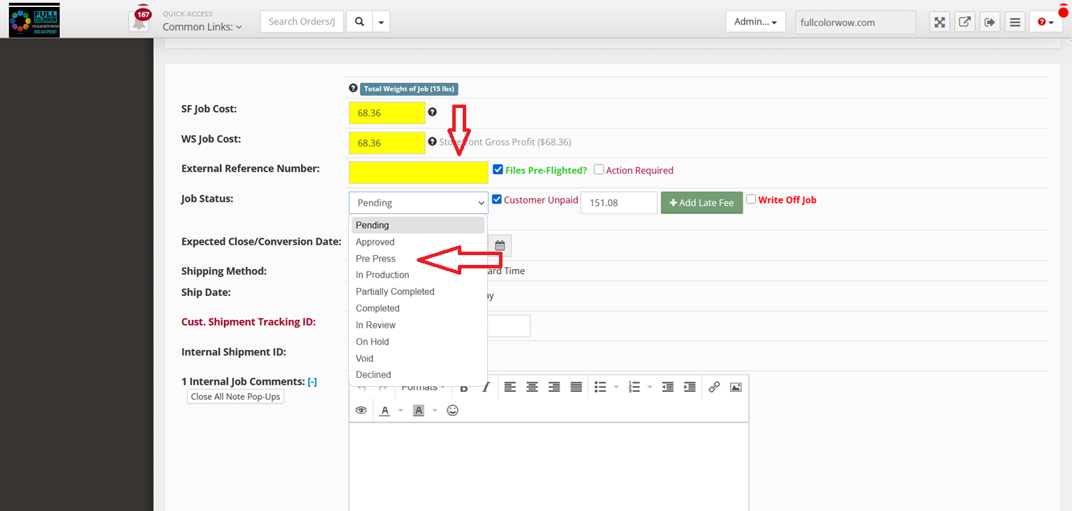 - Change status from Pending → Pre-Press
