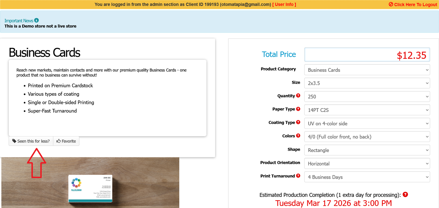 Confirm that a tab labeled “Seeing this for less?” appears on the product page.